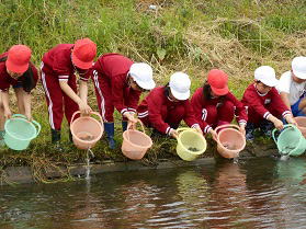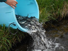 区一本橋付近で,体長13〜15cmの幼魚を放流してもらいました。