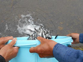 区一本橋付近で,体長13〜15cmの幼魚を放流してもらいました。