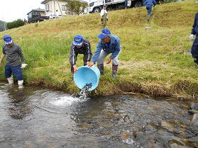 大北川及び花園川にアユ幼魚を合計350kgを放流しました。
